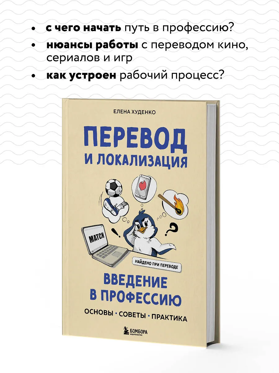 Перевод — удивительная сфера, объединяющая людей самого разного склада ума, в которой почти любой человек может найти комфортное место. Перед вами настоящий путеводитель по миру переводов и локализации, написанный профессионалом своего дела. Автор Елена Худенко кратко расскажет про все виды перевода, но в основном сосредоточится на переводе сериалов и кино, а также локализации игр. Вас ждет множество практических советов, концентрированный личный опыт автора и честный взгляд на современную индустрию перевода.
